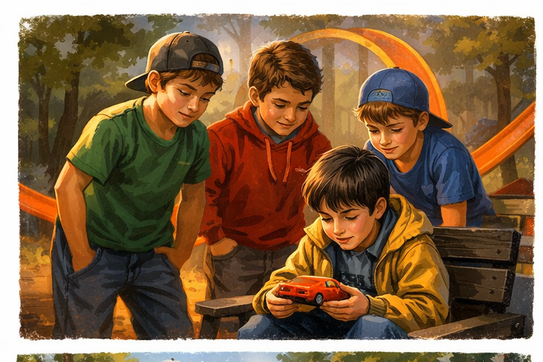 — Это тебе, — сказал Дима, протягивая машинку Сереже. — Это не потому что мы жалеем тебя. И не откуп. Это потому что… ну, потому что у каждого настоящего гонщика должна быть настоящая тачка. А ты — настоящий.