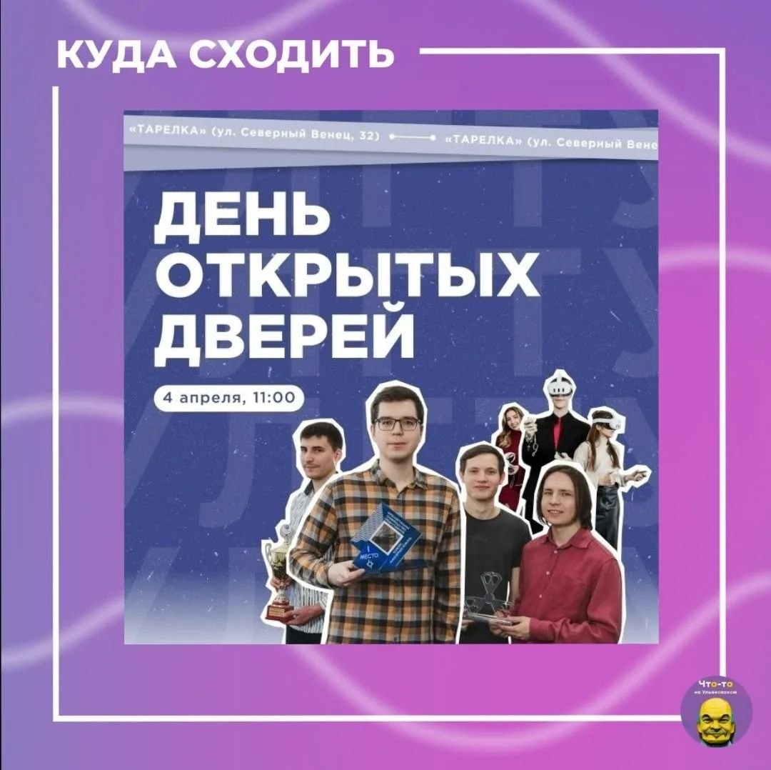 👍 Что вас ждет: ▫знакомство с факультетами ▫консультации приёмной комиссии ▫экскурсия по кампусу ▫общение со студентами 📅 Когда: 4 апреля в 11:00 📍 Где: РЦНТК им. Т.Л. Стениной («Тарелка»), ул. Северный венец, 32 #куда_пойти_ул