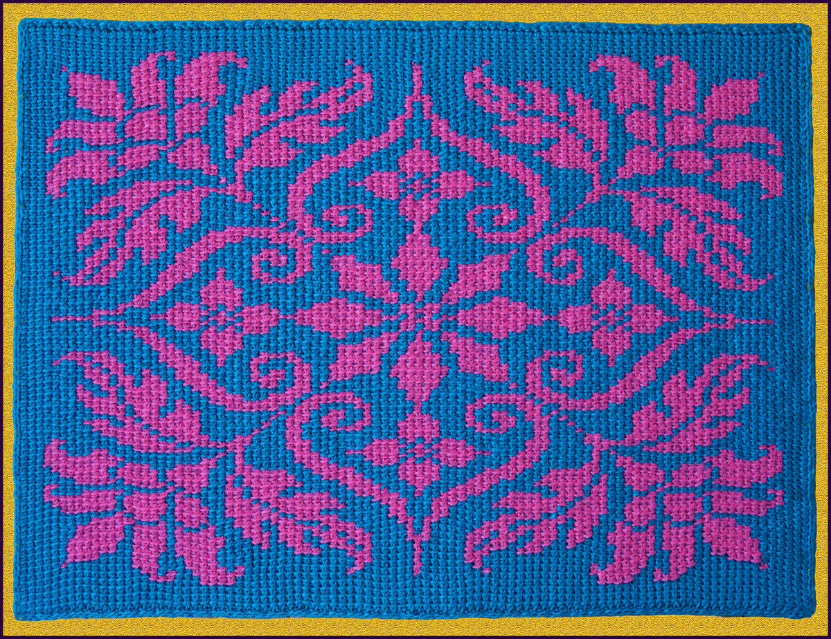 Коврик с красивым узором связан тунисским крючком 4,0 мм из пряжи производства Пехорка "Акрил" классической серии: 100% акрил, в 100 граммах 300 метров. Цвета пряжи: бирюза (№ 45) и фламинго (№ 123). Обвязка коврика выполнена обычным крючком 2,0 мм. Размер коврика 52*39 см. Вес коврика 142 грамма. Ссылка указана ниже: https://rutube.ru/video/675c7da3fd94a5b58749d4362bade48e/