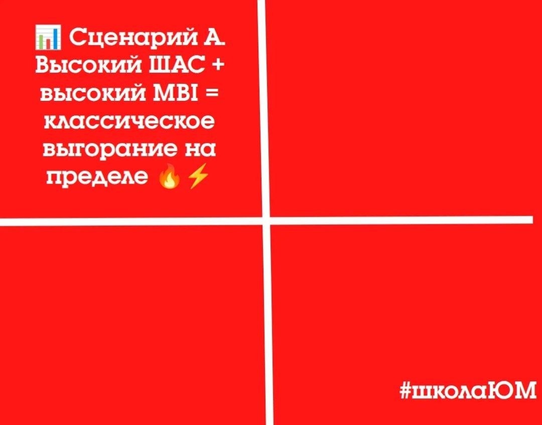 Высокий ШАС + высокий MBI = классическое выгорание на пределе 🔥⚡ Как выглядит: · ШАС: 80+ баллов (умеренная или выраженная астения) · MBI: высокие баллы по шкале «Эмоциональное истощение» и «Деперсонализация» · Шкала Бека и PHQ-9: легкая или умеренная (10–20 баллов) — или даже ниже, если выгорание еще не перешло в депрессию Что это значит: Ваша нервная система работает на пределе уже долгое время. Ресурсы истощены (ШАС). При этом система мотивации (дофаминовая петля) сломана — вы не получаете отдачи от того, что делаете (MBI). Это самый частый сценарий у людей, которые: · Долго работали в режиме многозадачности · Игнорировали сигналы усталости · Работали «на энтузиазме», который закончился · Находились в токсичной среде или в условиях неопределенности Что делать: Отдых в классическом понимании (поспать, полежать, уехать на море) не сработает. Потому что проблема не в том, что вы не отдохнули. Проблема в том, что сломана система п