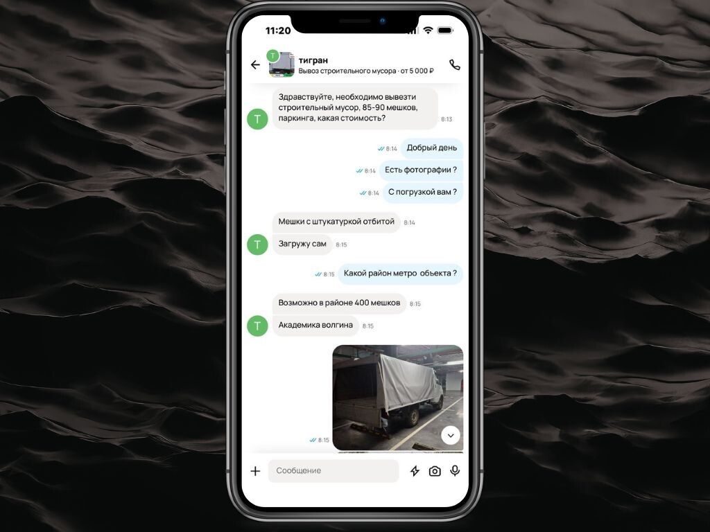 сколько рейсов × сколько стоит. Дальше клиент уточняет: «Может быть около 400 мешков» И вот здесь простая логика перестаёт работать. Потому что это уже не вывоз.