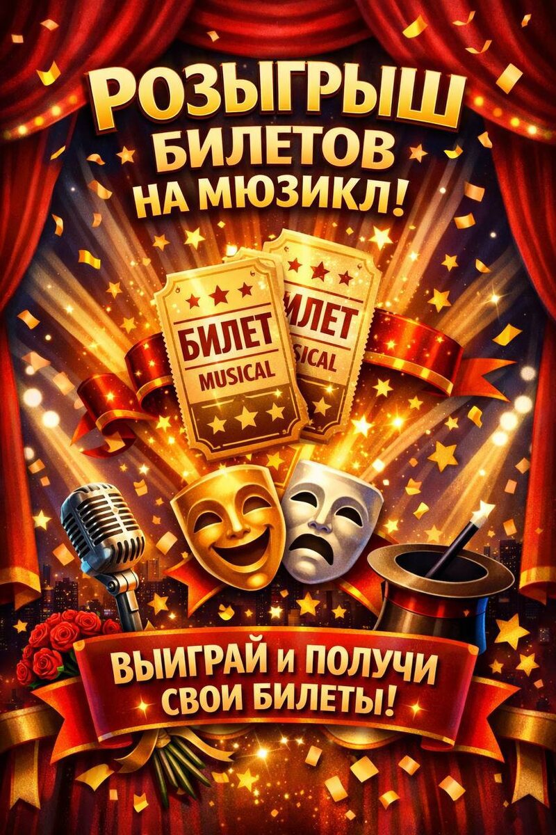 🎭 Напоминаем! У нас проходит ГРАНДИОЗНЫЙ розыгрыш билетов на детский мюзикл! 🎉 Вы можете выиграть 🎟 2 билета и подарить ребёнку настоящий праздник ✨ 👉 Все подробности и условия участия — в посте выше Не откладывайте — переходите и участвуйте прямо сейчас! Возможно, именно вы станете одним из 6 победителей!!!
