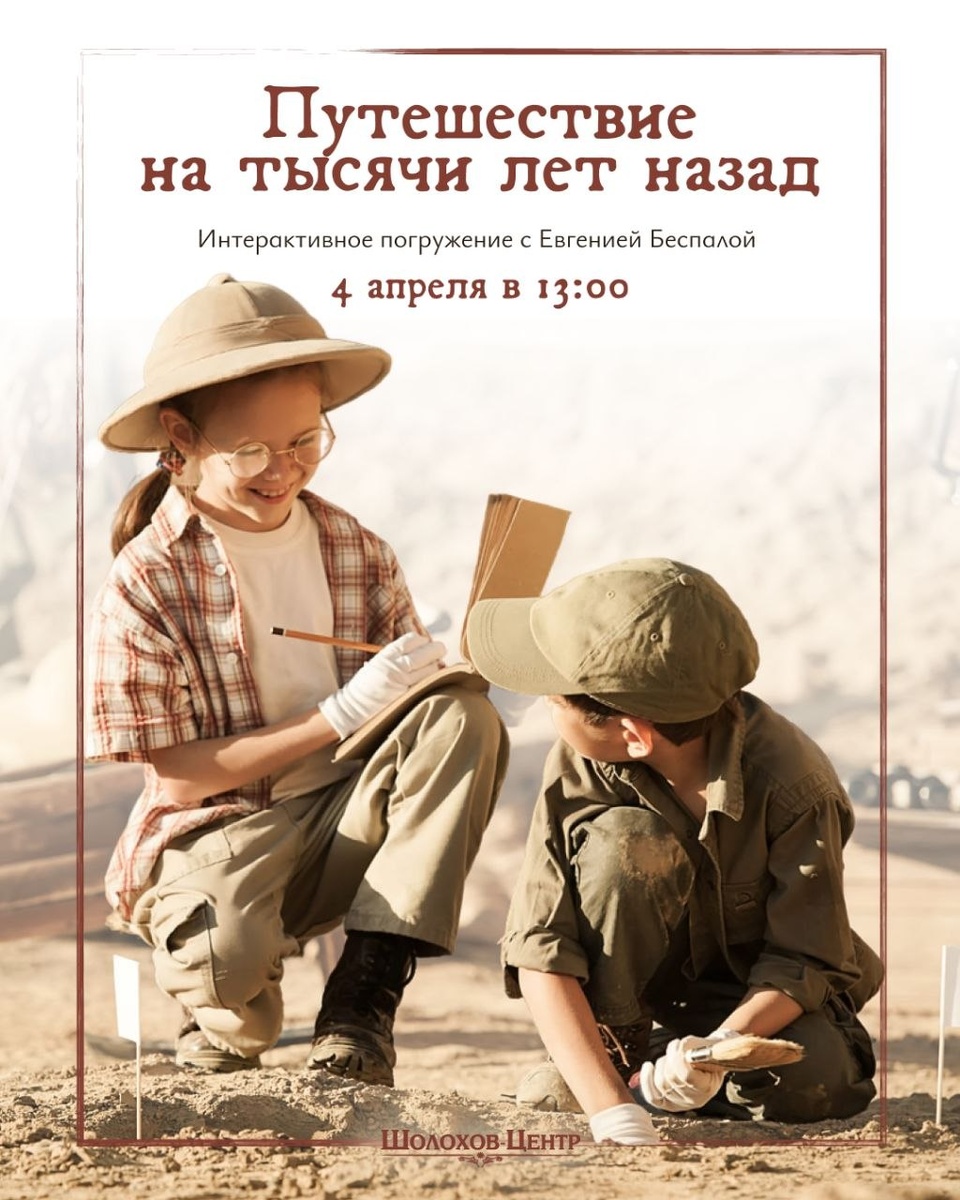 ? 4 апреля в Шолохов‑Центре его ждёт увлекательное приключение — интерактивное погружение в мир археологии! Вместе с историком‑археологом и гидом Евгенией Беспалой (автором проекта «НЕэкскурсии») маленькие исследователи отправятся в путешествие через тысячелетия. Их ждёт: - Захватывающие истории о кочевых племенах, живших на этих землях. - Древние артефакты, которые можно увидеть и потрогать: керамика с донских поселений и кости рыб старше 2 000 лет. - Удивительные палеонтологические находки: окаменелые деревья и моллюски из древнего океана Тетис, которым миллионы лет. Все артефакты можно будет потрогать! Проведите этот день всей семьёй — создайте незабываемые воспоминания вместе! 6+ Когда: 4 апреля, 13:00. Где: улица Большая Садовая, 125/69. Стоимость билетов: 500 рублей. 🫠 Детские мероприятия Ростов-на-Дону. Я местный! 📲 Мероприятия Ростов-на-Дону. Я местный! в MAX