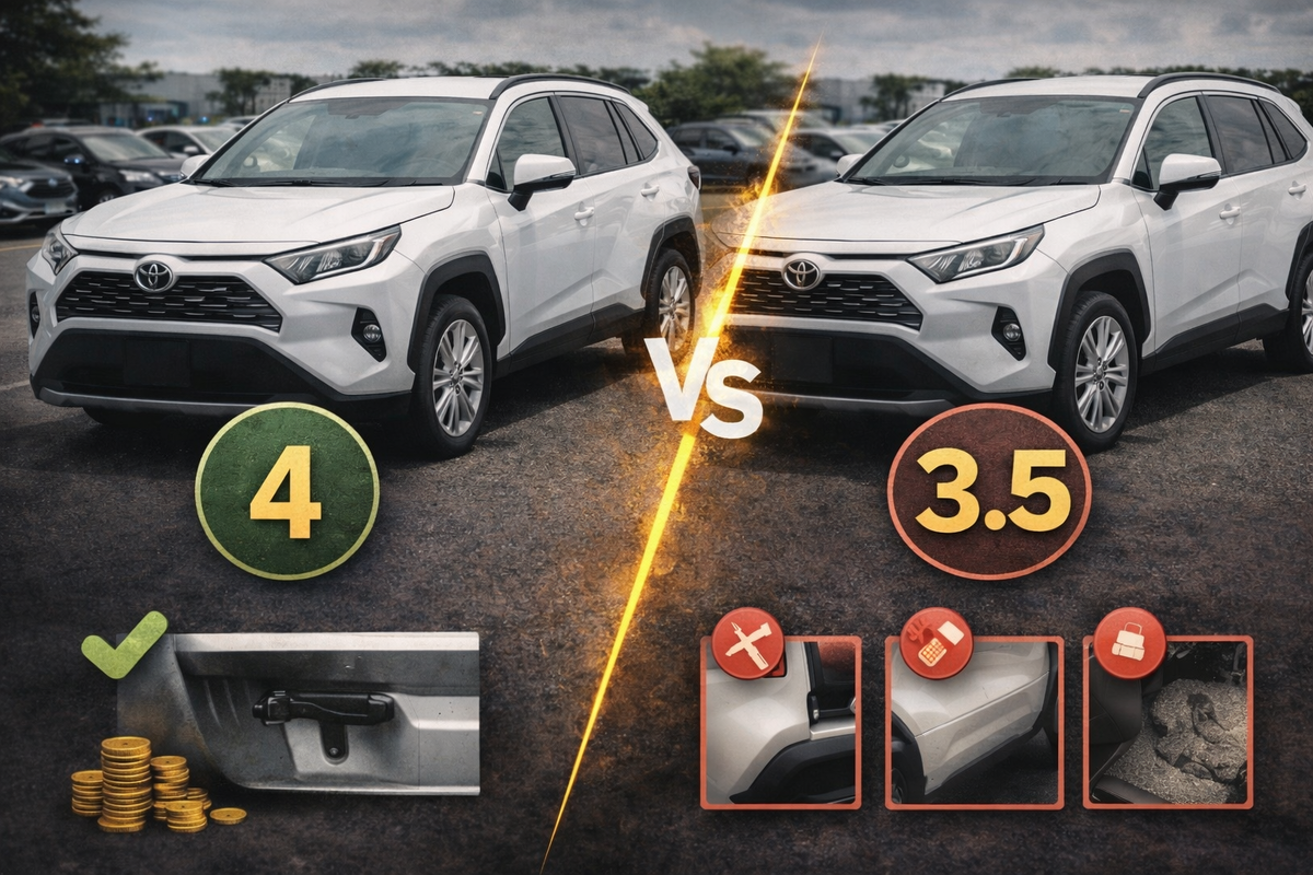 На практике 3.5 — это уже пограничная история. С виду такие машины часто выглядят нормально. На фото всё чисто, салон аккуратный, кузов блестит. И цена обычно приятнее — тысяч на 80–150 ниже, чем у четвёрок. Вот за это их и любят. Но дальше начинаешь смотреть аукционник — и там уже интереснее. Где-то подкрасы по нескольким элементам.