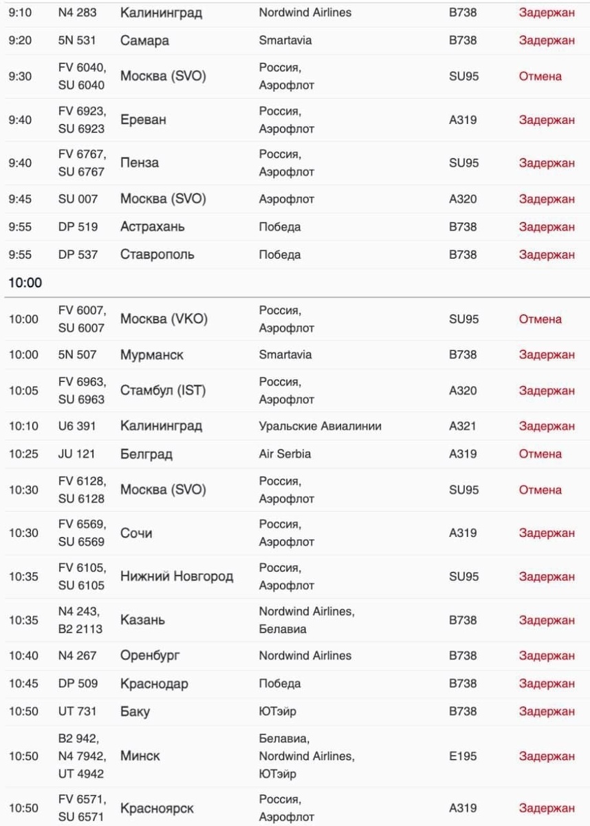 ✈️ Более ста рейсов задержали или отменили в Пулково из-за введённых ограничений