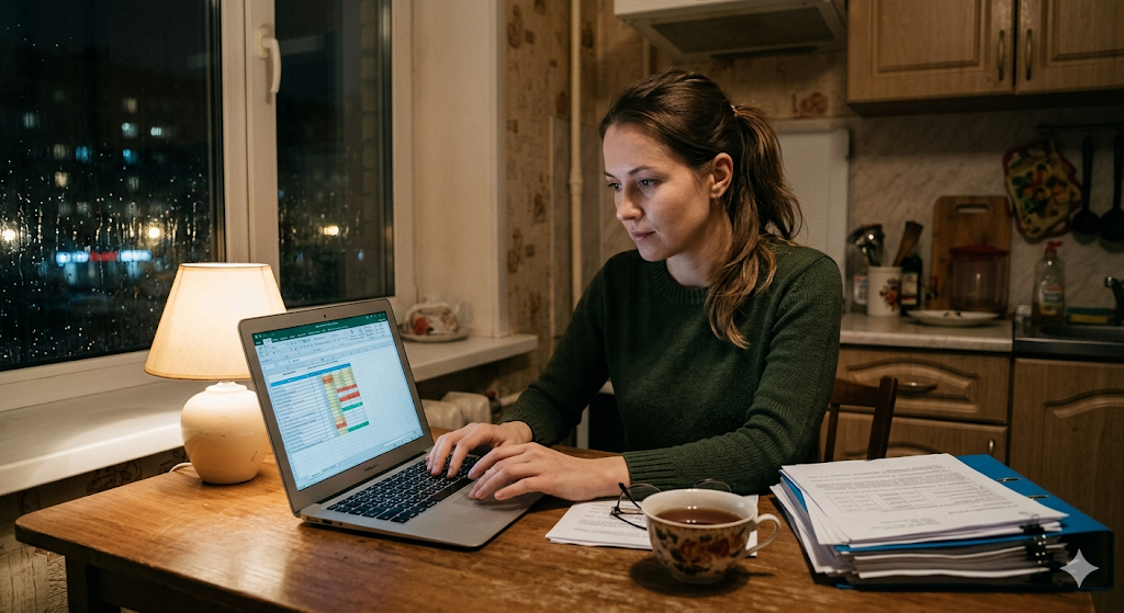 Каждый месяц в его части бюджета зияла дыра. Не огромная — восемь, десять, иногда двенадцать тысяч. Деньги, которые он снимал или тратил — но не на то, что она видела. Не на продукты, не на машину, не на ремонт.
