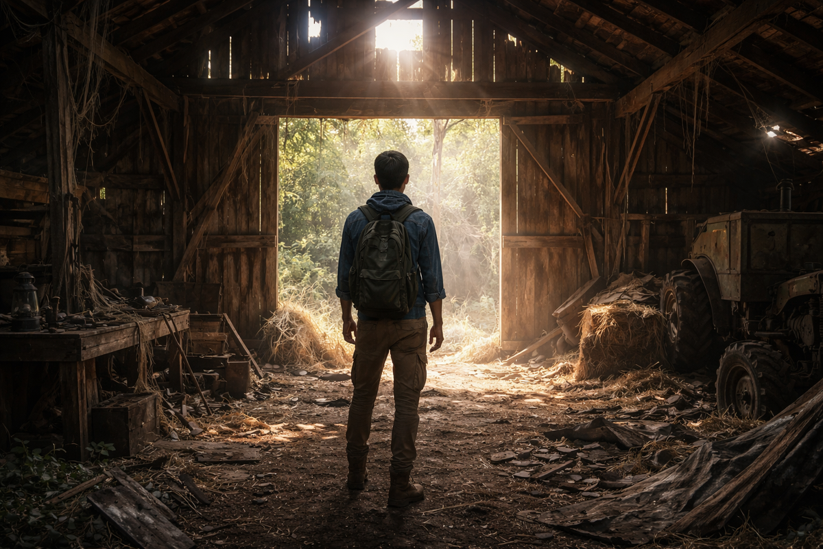 Кира спустилась по ступенькам, села на порог амбара и подтянула колени к себе. Солнце уже ложилось ей на волосы тонкой золотой полосой. Она посмотрела внутрь, на табурет, на коробку, на пыльный свет, и ничего не сказала. Да и не нужно было. Иногда семья начинается не там, где всё ясно с самого начала, а там, где наконец перестают прятать ключ.
