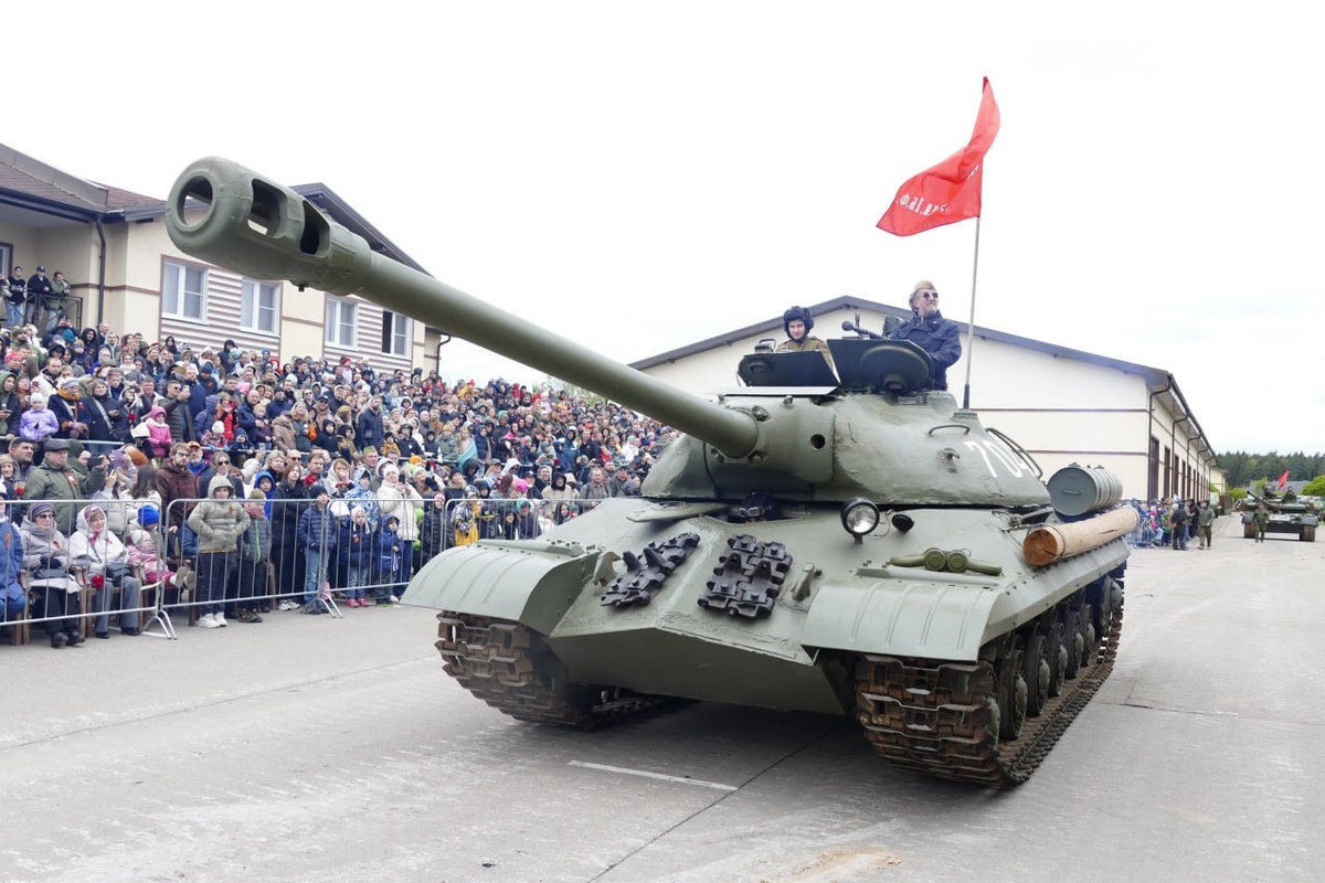 29 марта 1945 года на вооружение Красной армии был принят тяжёлый танк ИС-3 — одна из самых совершенных боевых машин своего времени. Уже в мае того же года началось его серийное производство, после чего танки стали поступать в войска, прежде всего — в Группу советских войск в Германии. Машина создавалась с учётом опыта Великой Отечественной войны и отличалась мощным вооружением, усиленной бронёй и рациональной компоновкой. Сразу после войны ИС-3 стал символом военной мощи государства: эти танки прошли по улицам поверженного Берлина в сентябре 1945 года, а затем были продемонстрированы на параде в Москве. В послевоенные годы они активно использовались для перевооружения танковых частей и сыграли важную роль в формировании новой структуры бронетанковых войск. Несмотря на ограниченное применение в составе советских войск, ИС-3 получил распространение за рубежом. Он состоял на вооружении армии Египта и применялся в ходе Шестидневной войны. Машина долгое время оставалась в строю как боева