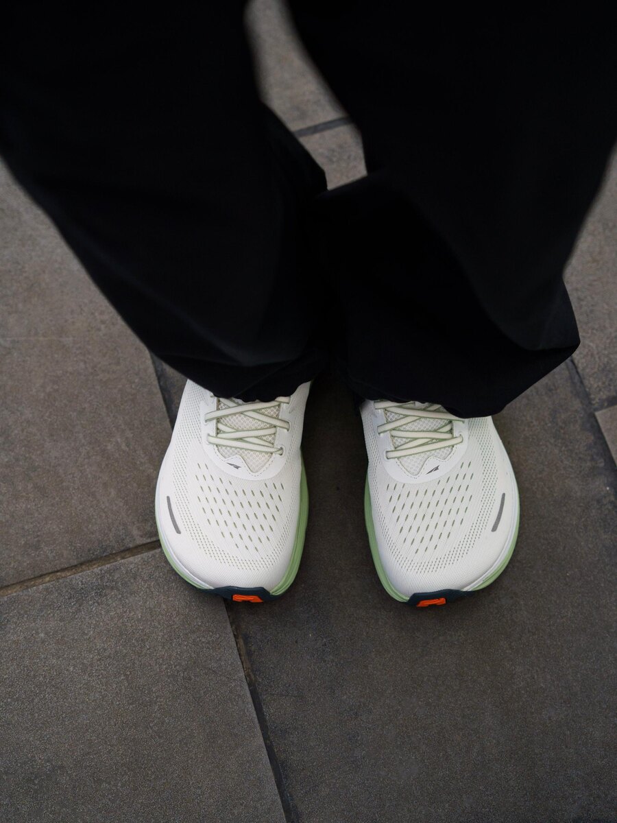 Сетчатый верх, продуманная посадка и массивная подошва с хорошей амортизацией. Всё собрано в понятный и современный силуэт. Фирменная zero drop геометрия даёт более естественное ощущение при ходьбе, а свежая расцветка с зелёными акцентами аккуратно освежает образ.