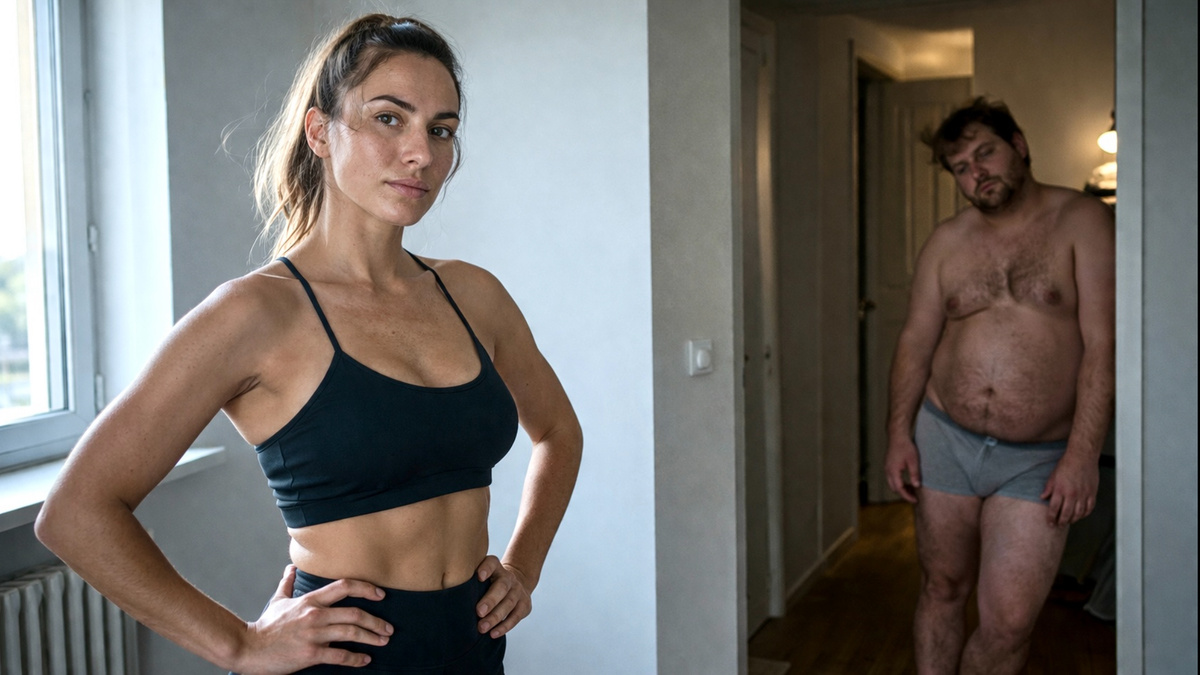 Я выхожу на кухню. Она стоит у плиты, в обтягивающих легинсах, в спортивной майке. Волосы собраны в хвост. Она похудела. Заметно. Я не худел. Я набрал. Она не говорит, но я вижу, как она смотрит на мой живот, когда я раздеваюсь.