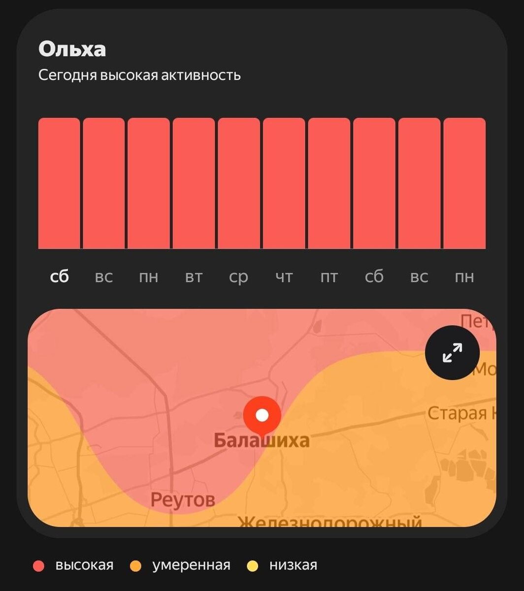 Возможны насморк, зуд в глазах и кашель. Старайтесь меньше бывать на улице в сухую и ветреную погоду, держите окна закрытыми, делайте влажную уборку, а после прогулок умывайтесь и промывайте нос. Пик активности ожидается в начале апреля. БалА́шИ́ха в МАХ ⤴️ Подписаться 🚧 Прислать инсайд🍊