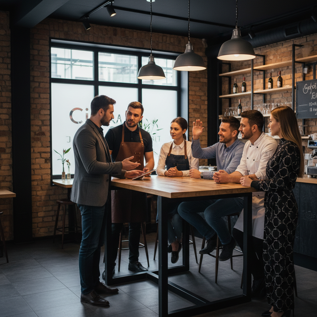 А вы знаете, что коммуникация — это не про красивые фразы и тренды. Это про конкретные сценарии, которые люди запомнят и будут использовать автоматически. Хороший диалог официанта с гостем экономит время, повышает средний чек и убирает конфликты. Ниже для вас пять рабочих сценариев и инструкция, как провести тренинг за 30–40 минут на смене. Почему важно тренировать коммуникации? Потому что умение правильно сказать одну фразу иногда важнее десятка хитрых маркетинговых ходов. Люди возвращаются туда, где с ними говорили по‑человечески: ясно, тепло и профессионально. Структура тренинга (30–40 минут) Сценарий 1 — Приветствие и посадка (первое впечатление) Цель: сразу задать тон и снизить тревогу гостя.