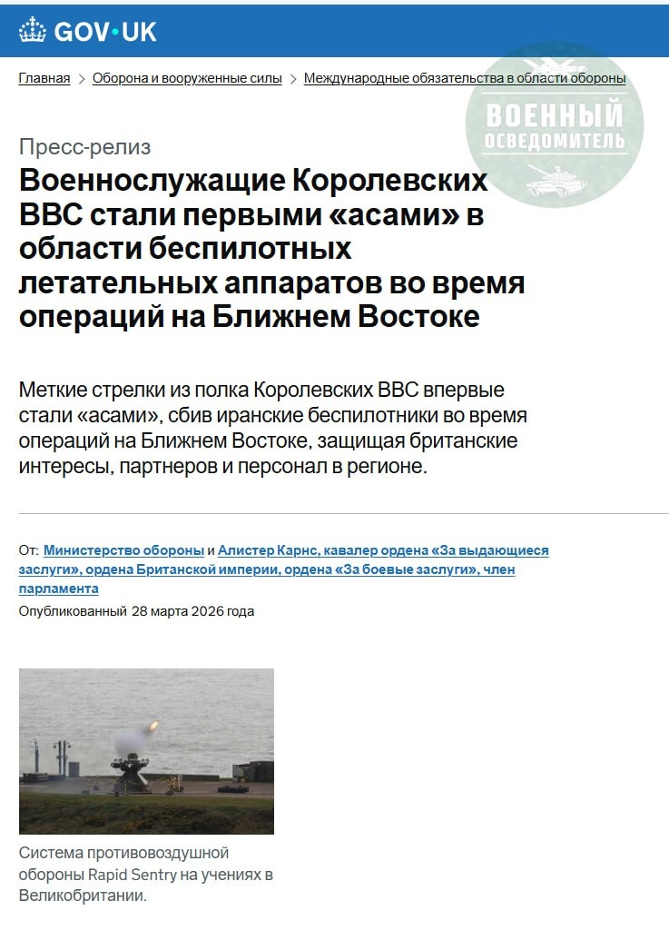 Будете смеяться, но в британских ВВС неиронично присвоили звание «асов» сбившим 5 и более иранских дронов
