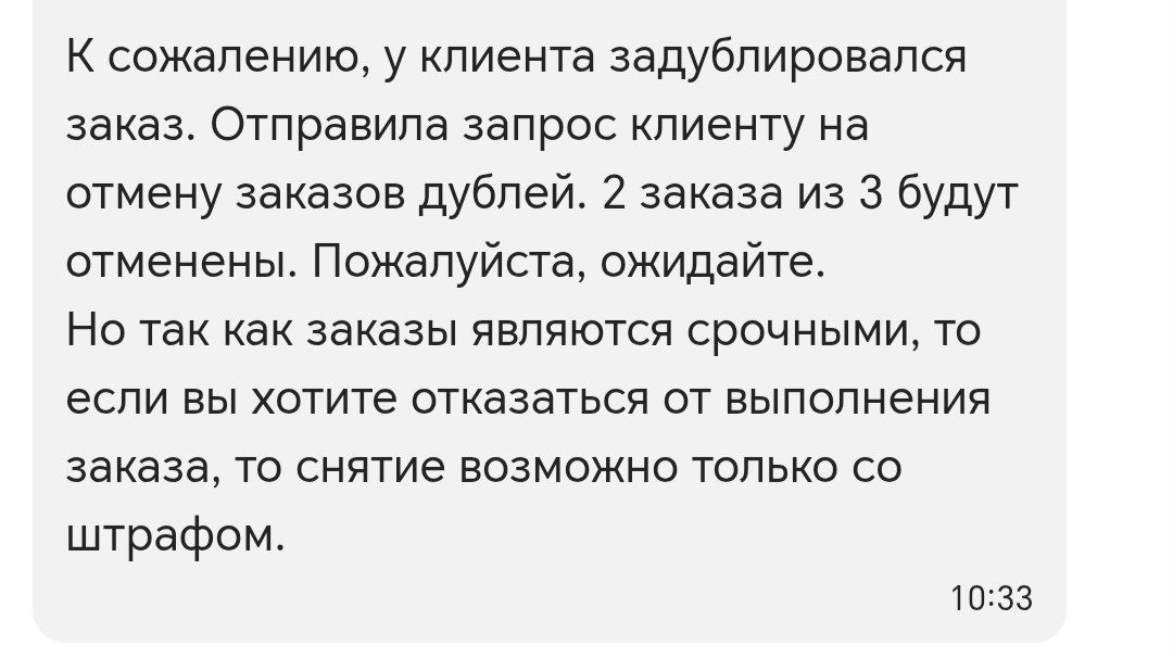 Ну а практически спустя час я схватила довольно хороший, короткий заказ из Летуаль. Между адресами приятные 30 минут за 668 рублей. По приезду в ТЦ, на кассе мне сказали " а Вы знаете, нам на электронную почту пришло письмо чтобы мы этот заказ не выдавали" .... Да ну что такое то! 😭И тут же на телефон прилетает сообщение, от которого я сначала была в шоке.....