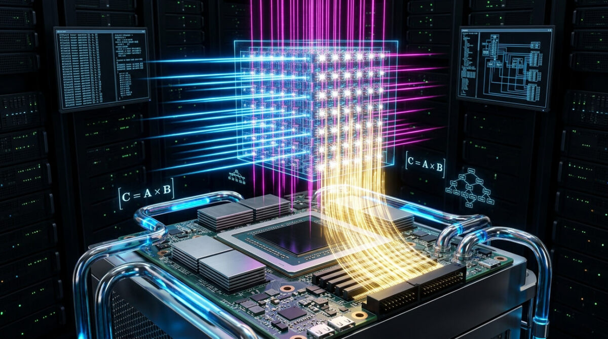 Процессор - любой обычный процессор, CPU или GPU - работает по одной схеме: взять данные из памяти, выполнить операцию, записать результат обратно в память. Для сложения двух чисел нужно два чтения и одна запись. Для матричного умножения матриц размером N×N нужно O(N²) чтений данных, но выполняется O(N³) операций - математически это выгодная пропорция. Казалось бы, матричное умножение должно быть именно той задачей, где арифметические блоки никогда не простаивают.