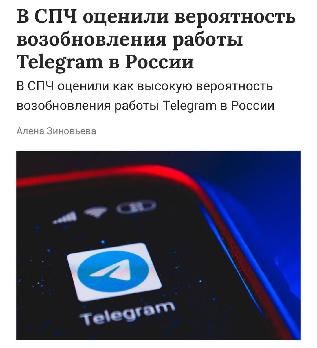 В Совете по правам человека оценили вероятность возобновления работы Telegram в России как высокую