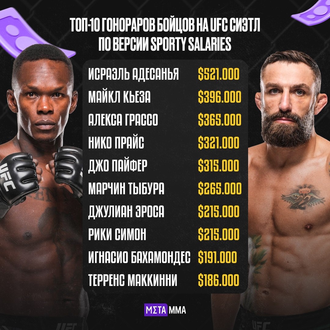🔥💰 | Адесанья увез больше полумиллиона долларов, Мусаев – 150 тысяч: гонорары UFC Сиэтл