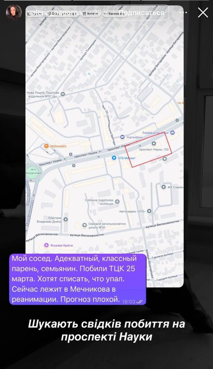 По информации очевидцев, потерпевший получил тяжелую черепно-мозговую травму во время задержания. Сейчас он находится в реанимации больницы им. Мечникова, ему провели операцию. Сообщается, что правоохранители пытаются замять инцидент и оформить произошедшее как травму от падения. Еще один случай произошел в Одессе: по данным каналов, мужчине сломали ногу, а затем заставили на камеру заявить, что он упал самостоятельно. Сайт "Другая Украина" / Telegram / Вконтакте / Центр поддержки Украинцев "Другая Украина" теперь в МАХ