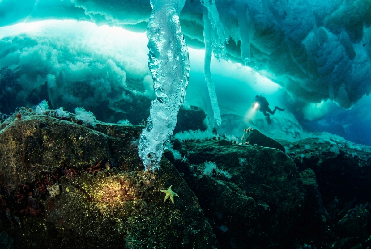 Вы когда-нибудь видели сосульки, которые растут не на крыше, а на дне океана? Такие, что не тают в солёной воде и тянутся вверх, как огромные ледяные пальцы? Это не фантастика. В Арктике и Антарктике действительно существует такое явление. Звучит как сценарий фильма ужасов? Но это чистая физика. И сегодня я расскажу, как природа создаёт эту ледяную красоту. Брайникл — это ледяное образование, которое формируется на дне океана в полярных регионах. Оно выглядит как прозрачная трубка или сталактит, растущий от поверхности льда к морскому дну Но как лёд может расти под водой? Всё начинается на поверхности океана, когда образуется морской лёд. Его температура может опускаться до -20°C, при том что окружающая вода имеет около -1,8°C (солёная вода замерзает при более низкой температуре) Этот переохлаждённый рассол тяжелее обычной воды. Он начинает опускаться вниз, к дну. Получается тонкая ледяная трубка, внутри которой продолжает течь холодный «рассол» И эта трубка растёт. Вниз, ко дну