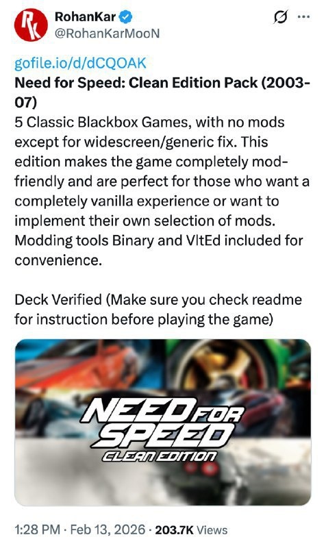 ! Энтузиаст взялся за обновление классических гонок: исправил баги, добавил поддержку широкоформатных мониторов и геймпадов, а также оптимизировал под Windows 10/11 и Steam Deck. В сборник вошли такие хиты, как Underground, Most Wanted, Carbon и другие, теперь с улучшенной графикой и эффектами. Готовьтесь к заездам! #Techtaim