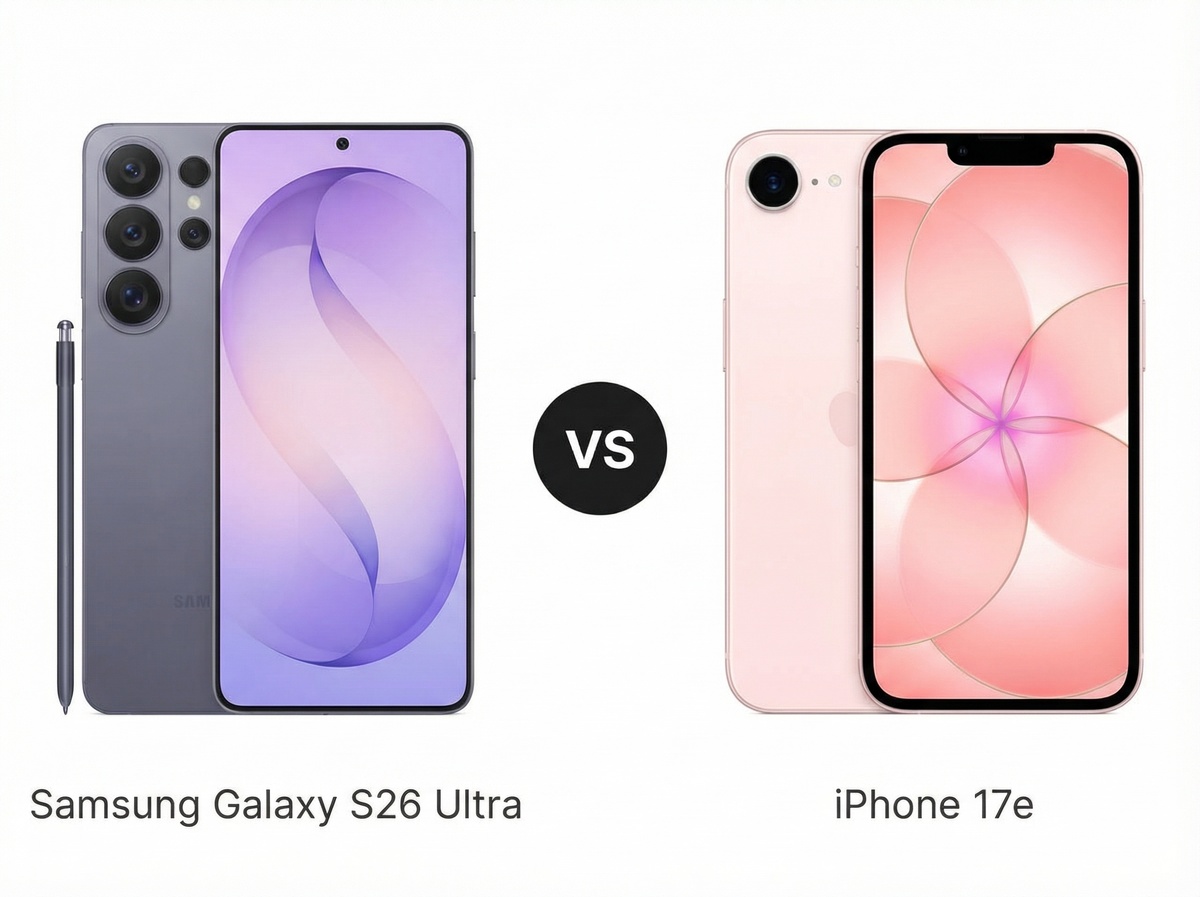 Представьте: один смартфон - монстр с 200 МП камерой, стилусом и зумом как у телескопа, цена как хорошая машина. Другой - компактный, надёжный, с iOS, который летает, и стоит в два раза дешевле. Samsung Galaxy S26 Ultra против iPhone 17e - битва, где S26 Ultra рвёт в тестах, но iPhone берёт ценой и простотой. Что выбрать в 2026 году? Разберём по полочкам, чтобы вы сами решили и не пожалели о деньгах! Galaxy S26 Ultra - большой (6,9" AMOLED LTPO, 120 Гц, 2600 нит, QHD+), с Gorilla Armor 2, алюминиевой рамкой и S Pen внутри. Царапины? Не боится! Антиблик, матовый - идеал для улицы и заметок. Защита IP68 - ныряйте смело. iPhone 17e - миниатюрный (6,1" OLED, 60 Гц, 1200 нит), Ceramic Shield 2, алюминий, IP68. Цвета точные, но плавности меньше, яркость слабее. Лёгкий, в кармане не мешает. Вердикт: Samsung выигрывает - экран ярче, больше, со стилусом. Для видео и работы - топ. iPhone - для тех, кто носит в руке часами. S26 Ultra на Snapdragon 8 Elite Gen 5 (Oryon-ядра) + до 16 ГБ RAM, UFS 4.
