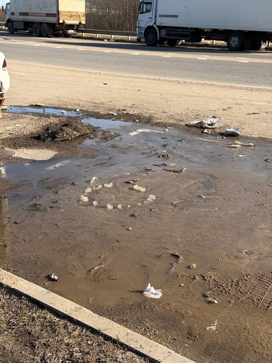 Перед эстакадой Дрожжино-Боброво трубу прорвало, кажется. Хз, куда звонить.