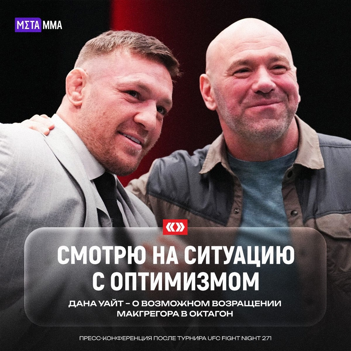 Глава UFC Дана Уайт прокомментировал возможное возвращение Конора Макгрегора в октагон уже этим летом. По слухам, ирландец может подраться с Максом Холлоуэем 11 июля, но, как отметил Уайт, до сделки пока далеко. «Бой Конора в июле? Возможно. Но ничего не решено. Нельзя сказать, что хоть что-то отдаленно напоминает близость сделки. Тем не менее я смотрю на ситуацию с оптимизмом», – сказал Уайт. ❓Увидим ли Макгрегора в июле? 🔥 — Да, бой скоро объявят 🤔 — Снова всё сорвётся 👊 Подпишись на Meta MMA | Meta MMA в MAX | Наш канал в ВК