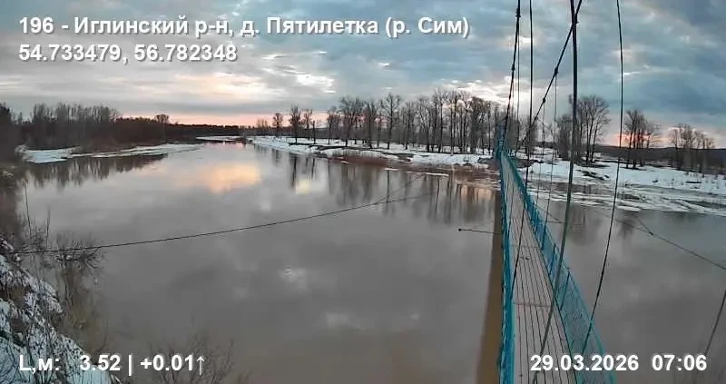 29 марта паводок ограничил движение транспорта в Белорецком районе. По данным властей, с 17:30 закрыто движение для всех видов транспорта по дороге Верхний Авзян — Исмакаево — а/д Станция Улу-Елга — Ишля — Тукан — Зигаза (км 20+000 — км 41+000). По данным регионального госкомитета по ЧС, за минувшие сутки система 112 зарегистрировала 14 сообщений, связанных с весенним половодьем. В четырех районах — Абзелиловском, Баймакском, Кугарчинском и Куюргазинском — также ограничено движение транспорта. «Наибольшие подъемы уровня воды отмечаются на реке Инзер у села Ассы Белорецкого района, динамика уровня воды за сутки +98 см, текущий уровень 247 см, выход реки на пойму 369 см. На реке Сим у деревни Пятилетка Иглинского района, динамика уровня воды за сутки +95 см, текущий уровень 344 см, выход реки на пойму 616 см», — поделился руководитель профильного госкомитета Кирилл Первов.
