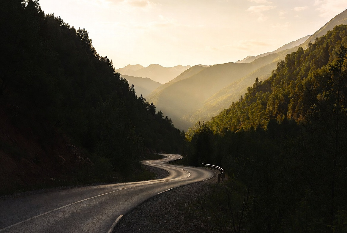 Утро на «Портале» — это тихий свет, дорога к Тюнгуру и ощущение, что вы снова справитесь. Вот тот момент, который почти как иллюстрация: дорога, которая ведёт вверх, свет, играющий на склоне.