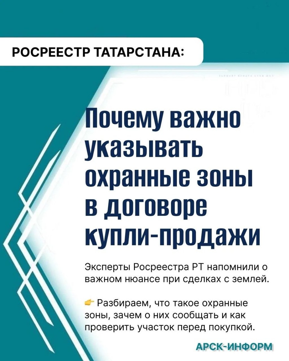 ! Росреестр РТ напоминает: продавец обязан сообщить о любых ограничениях. Иначе — риск расторжения сделки и возмещения убытков. Рассказываем: какие бывают охранные зоны (их 28 видов!); где проверить участок перед покупкой; можно ли строить и регистрировать недвижимость в таких зонах; какая грозит ответственность за нарушения. 📌 Читайте в карточках