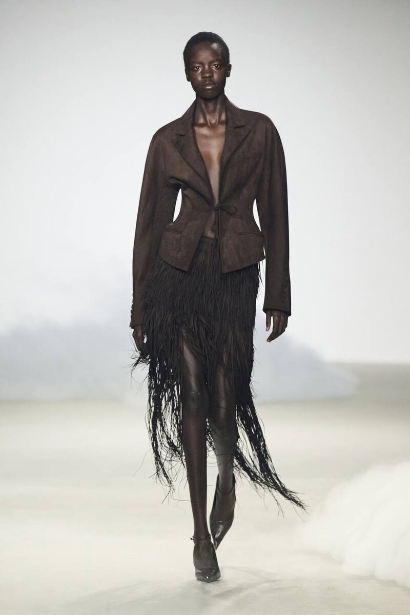 Oude Waag Fall 2026 — это не про тренды, а про состояние. Jingwei Yin проживает сложный период и переводит его в коллекцию, которую он называет Radical Tenderness — радикальная нежность. Травма здесь становится формой: рваный трикотаж, слоистость как защита, приглушённые оттенки, текучие силуэты. Острые детали и асимметрия — про внутреннее напряжение. Мягкие драпировки и объем — про попытку укрыться. Это диалог между уязвимостью и силой. Между «ломаюсь» и «собираю себя заново». Не одежда как образ — одежда как состояние. И, возможно, самый честный ответ на вопрос, зачем вообще нужна мода сейчас.