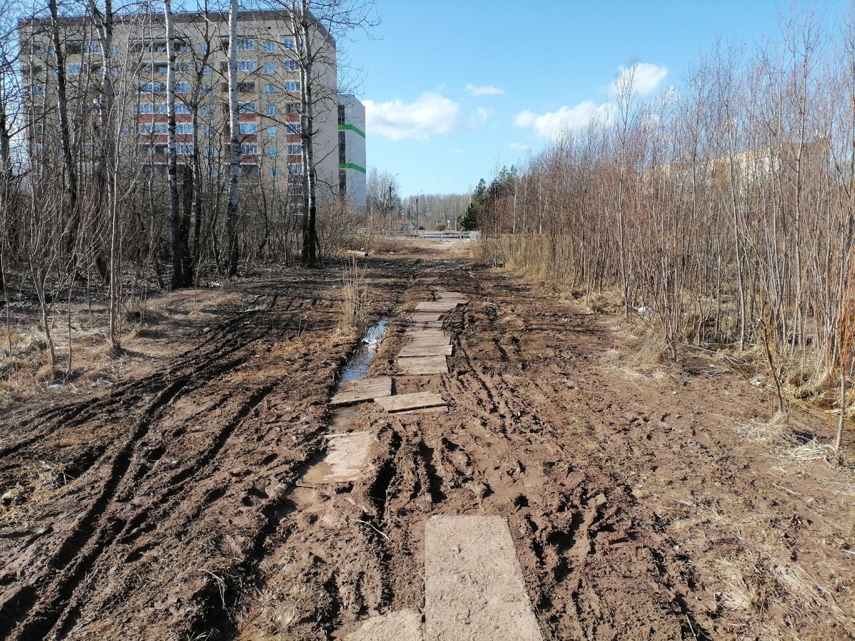 Дорога к знанием неприглядна и сложна Жительница Великого Новгорода Надежда Николаева в соцсетях предложила построить канатную дорогу на участке улицы профессора Владимира Сороки, где из-за отсутствия нормального тротуара пешеходы вынуждены пробираться по грязи и хаотично уложенным доскам. Проблемный участок соединяет ул. Советской Армии с микрорайоном «Ивушки» и ведёт к школе № 36, Новгородскому государственному университету и химико-технологическому институту. Весной и осенью участок превращается в болото: слякоть делают проход практически невозможным без испачканных брюк и обуви. На фото видно, что коммунальщики пытались сгладить ситуацию деревянными настилами, но и они тонут в размокшей дороге. «Вот где нужна пешеходная дорога. Если на канатную в этом месте во время дождей денег не хватит, то хоть на настил из досок или плит запланируйте, пожалуйста», — обратилась она к властям города.