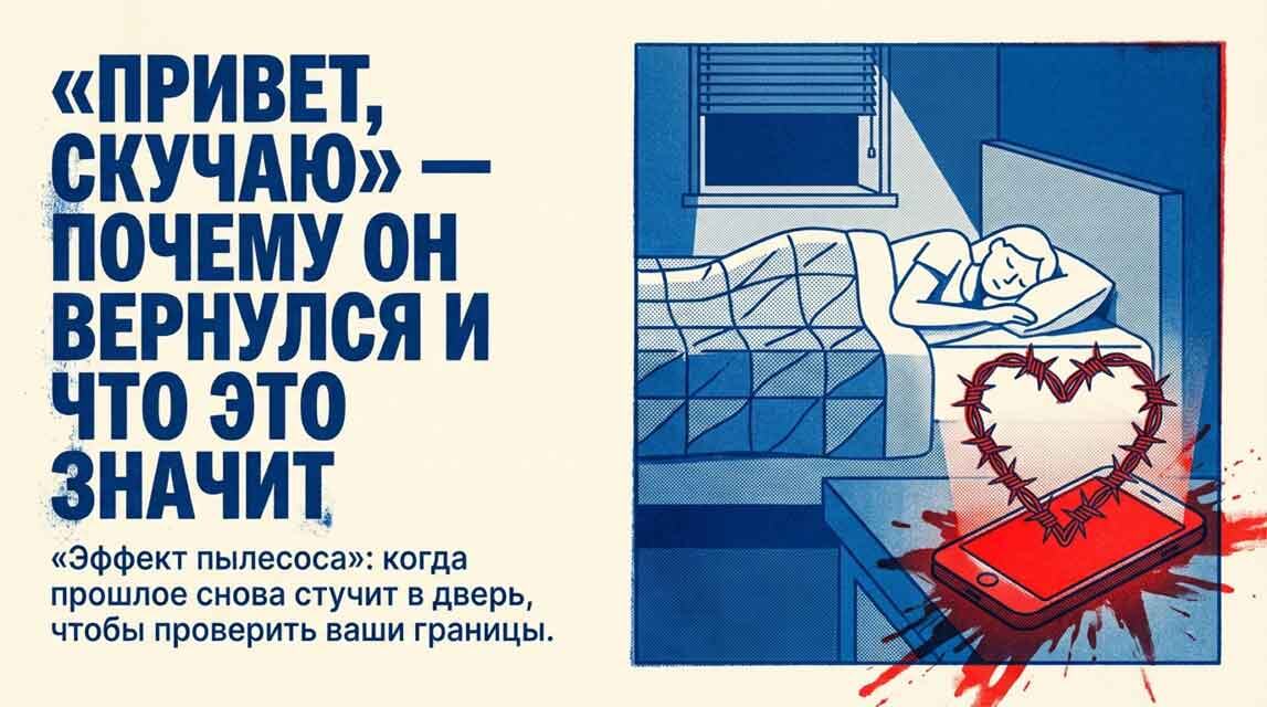 Психологи называют это хуверингом (от англ. "пылесосить"). Манипулятор "всасывает" вас обратно в свои игры. Не из любви. Из потребности в контроле.