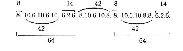 Э. Конюса, я только приведу один пример из сотен пьес, проанализированных им в течение многих лет. Это — анализ антракта d-moll из "Кармен" Бизе (цифры обозначают количество тактов). Когда просмaтpивaeшь десятки и сотни пьес, проaнaлизиpовaнных по системе Г. Э. Конюса, невольно поражаешься универсальностью и красотой числового строения музыкальной формы. Тут ясно видно аpхитeктуpноe строение, выливающееся из глубины творческого сознания художника, бессознательно подчиняющегося вечным законам диалектики чисел. Глубина и тайна творчества зацветает точеным символом, – фигурных чисел. Понять красоту и логическую необходимость этого фигурного числового символа способна только диалектика, А.Ф. Лосев "Музыка как предмет логики"