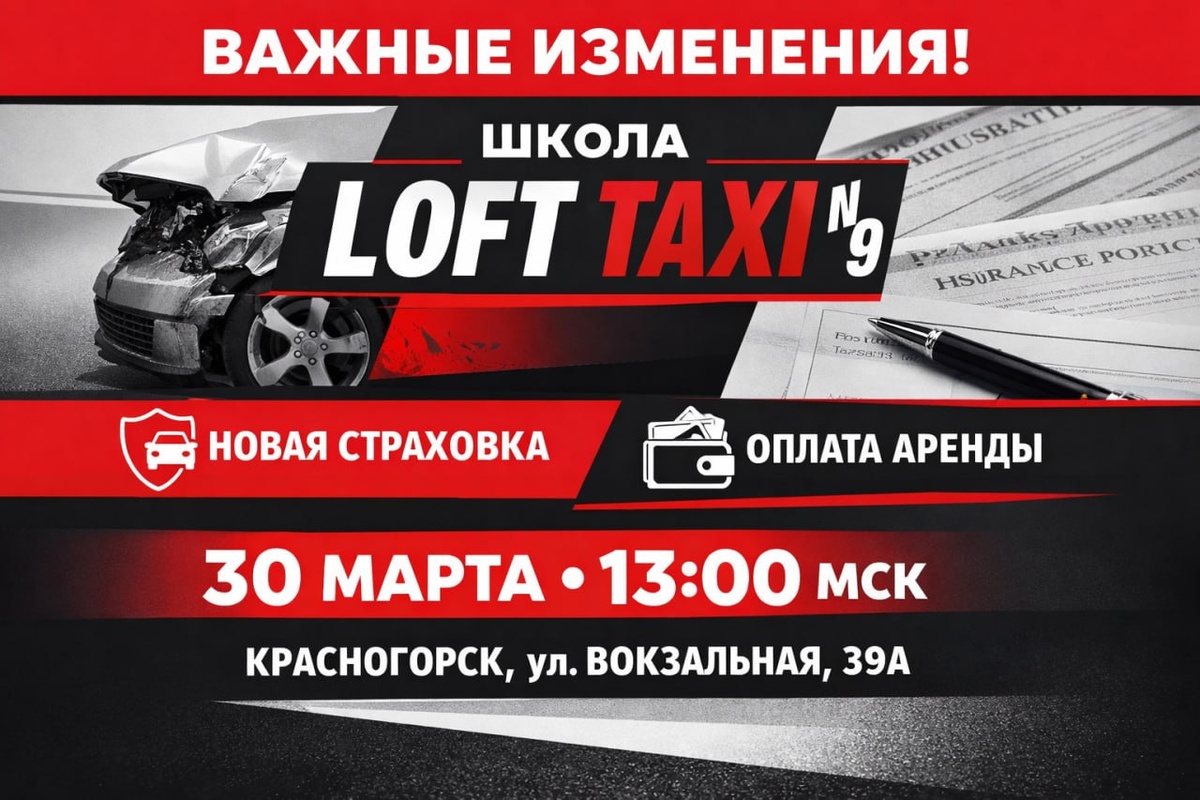 В марте тема страховой защиты водителей снова вышла на первый план. Правила ужесточаются, риски на линии никуда не исчезают, а цена ошибки для водителя по-прежнему слишком высокая. Поэтому 30 марта в 13:00 на встрече Школы LOFT TAXI №9 мы разберём сразу две важные новости, которые напрямую касаются вашей работы и денег. 📌 Что меняется в LOFT TAXI? Расскажем на встрече. Будет два ключевых блока: — о новой системе защиты водителя; — о новом формате оплаты аренды, который даст больше гибкости в течение дня. 🎤 Спикер — Сурен 🎙 Ведущий — Алексей 📍 30.03.2026 в 13:00 г. Красногорск, ул. Вокзальная, д. 39А Если вы работаете на результате и хотите заранее понимать новые условия — эту встречу лучше не пропускать. 🚖 Школа LOFT TAXI №9 Важные новости. Важные изменения. Практический разбор. Связаться с нами: 📲 +79015779979 или в любом удобном мессенджере: Telegram| WhatsApp| MAX 🥹 Сайт аренды 💬 Чат LOFT TAXI 🚕 Яндекс Гараж 📱 Вконтакте - c прямыми эфирами всех наших встреч.