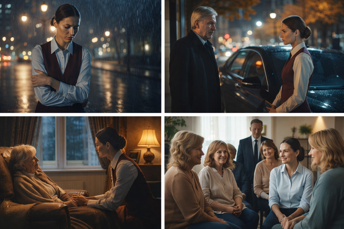 Каждое утро Марина вставала в шесть. Сначала — мама: таблетки, умыть, покормить, поговорить, чтобы не чувствовала себя обузой. Потом — быстрый чай, строгий пучок, тёмная форма, и бегом на остановку. Она никогда не опаздывала. Никогда не грубила. Никогда не позволяла себе лишнего слова. Потому что знала — таких, как она, много. И если оступишься — заменят без сожаления.