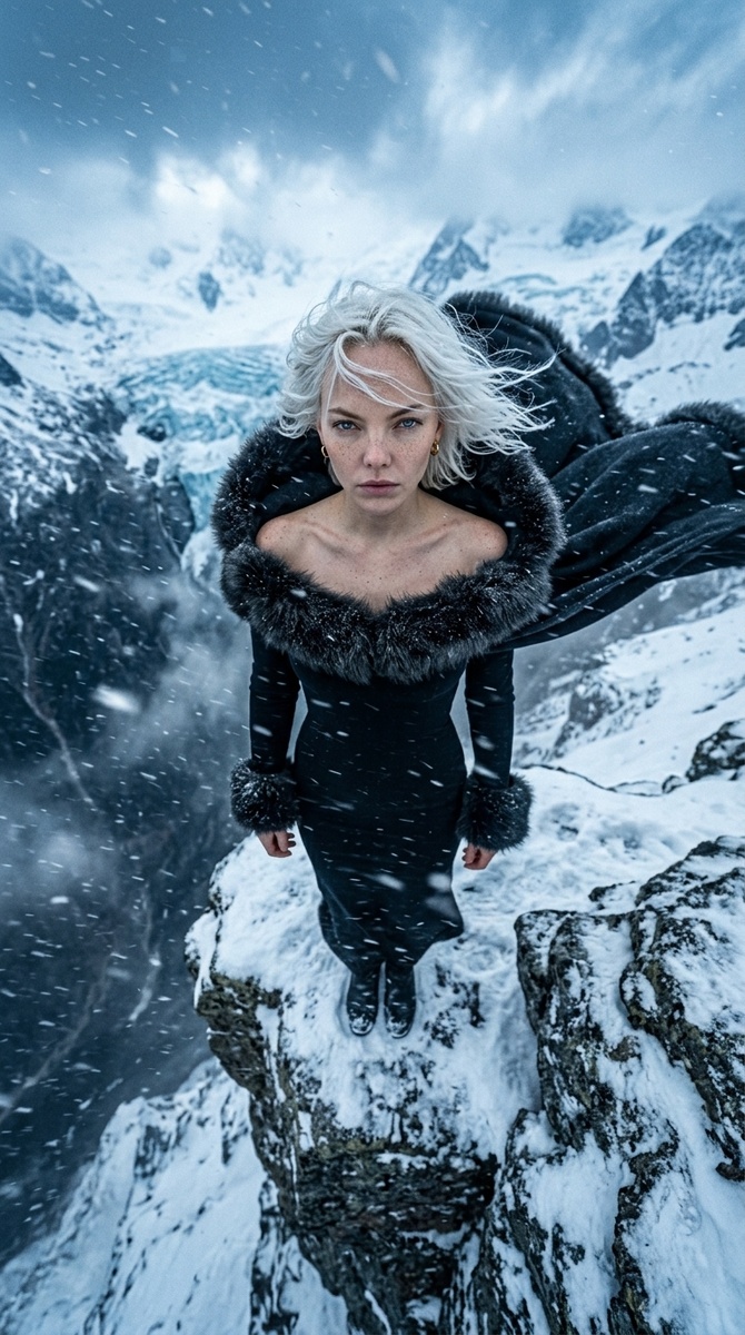 Сначала ты стоишь на краю. Потом падаешь на колени. Потом — и это самое странное — начинаешь улыбаться. Не потому что стало легче. Потому что поняла кое-что важное про себя. Есть такой момент в жизни каждой женщины — когда уходишь туда где никого нет. Не физически. Внутренне. Холод, высота, ветер который выдувает всё лишнее — и ты стоишь одна с тем что осталось. Без объяснений для других. Без роли которую надо играть. Это не депрессия. Это инвентаризация. Многие боятся этого состояния и пытаются из него выскочить — в отношения, в работу, в чужие советы. Те кто остаются в нём чуть дольше — выходят другими. Более настоящими. Падение — это не метафора. Иногда жизнь буквально ставит тебя на колени. Предательство. Потеря. Конец чего-то на что ты поставила всё. Разорванная одежда, холодный пол, и что-то мокрое на лице — слёзы или кровь уже не разобрать. Но посмотри на взгляд. Он направлен вверх. Это и есть та самая точка разворота о которой не пишут в книгах по саморазвитию. Она не красива