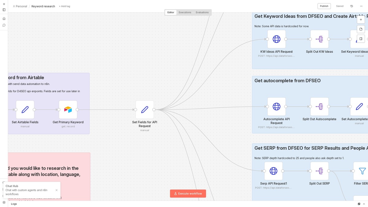 ⚡ Что делает: Автоматизация собирает данные о ключевых словах из различных источников с помощью HTTP-запросов, обрабатывает информацию через фильтры и разделяет результаты для дальнейшего анализа. Затем результаты сохраняются в Airtable и визуализируются на Sticky Note. 👥 Кому подойдёт: Маркетологам и SEO-специалистам, нуждающимся в глубоком анализе ключевых слов. 💡 Пример: Автоматизация позволяет собрать и визуализировать данные о популярных запросах для повышения видимости сайта. 🔗 Ноды: Airtable, Filter, Split Out, Sticky Note 📊 Сложность: Сложный #n8n #automation #nocode #airtable #filter #splitout ════════════════ 🎬 YouTube | ⚙️ Канал | 💬 Чат | 📮 Реклама