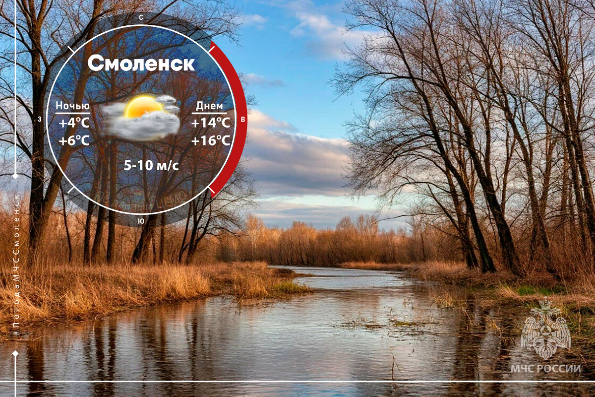 В Смоленске ночью +4…+6°C, днём +14…+16°C.