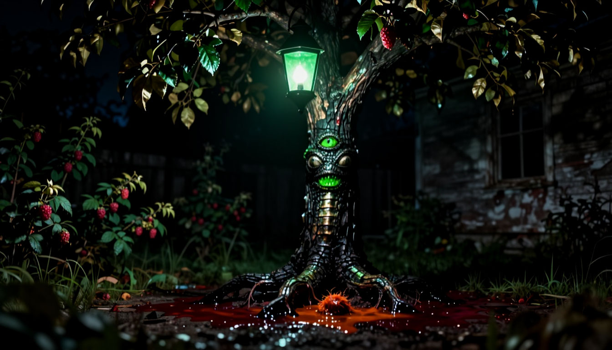 Ствол скрипнул, повернулся в мою сторону. Ветви дрогнули, потянулись ко мне. Из трещин в коре показались отростки — тонкие, гибкие, с крючковатыми кончиками. Они шевелились, будто нюхали воздух. Я отступил, попятился к дому.
