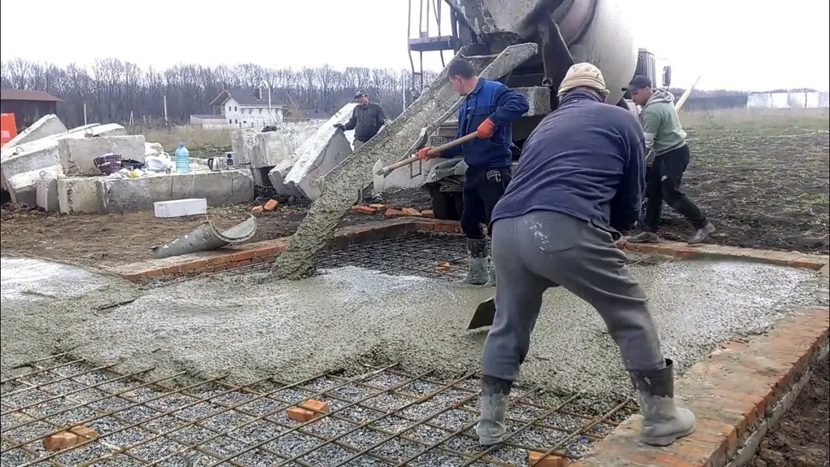 - Заливка бетоном.