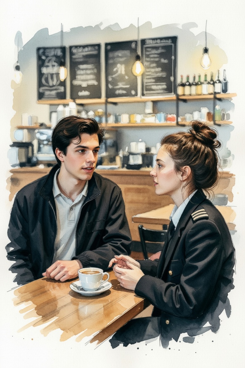 Катя открыла глаза и увидела парня. Высокий, спортивный, в джинсах и кожаной куртке. Тёмные волосы чуть растрепаны ветром, карие глаза излучали тепло, а улыбка была искренней. В руках он держал такой же стаканчик кофе, как у неё.