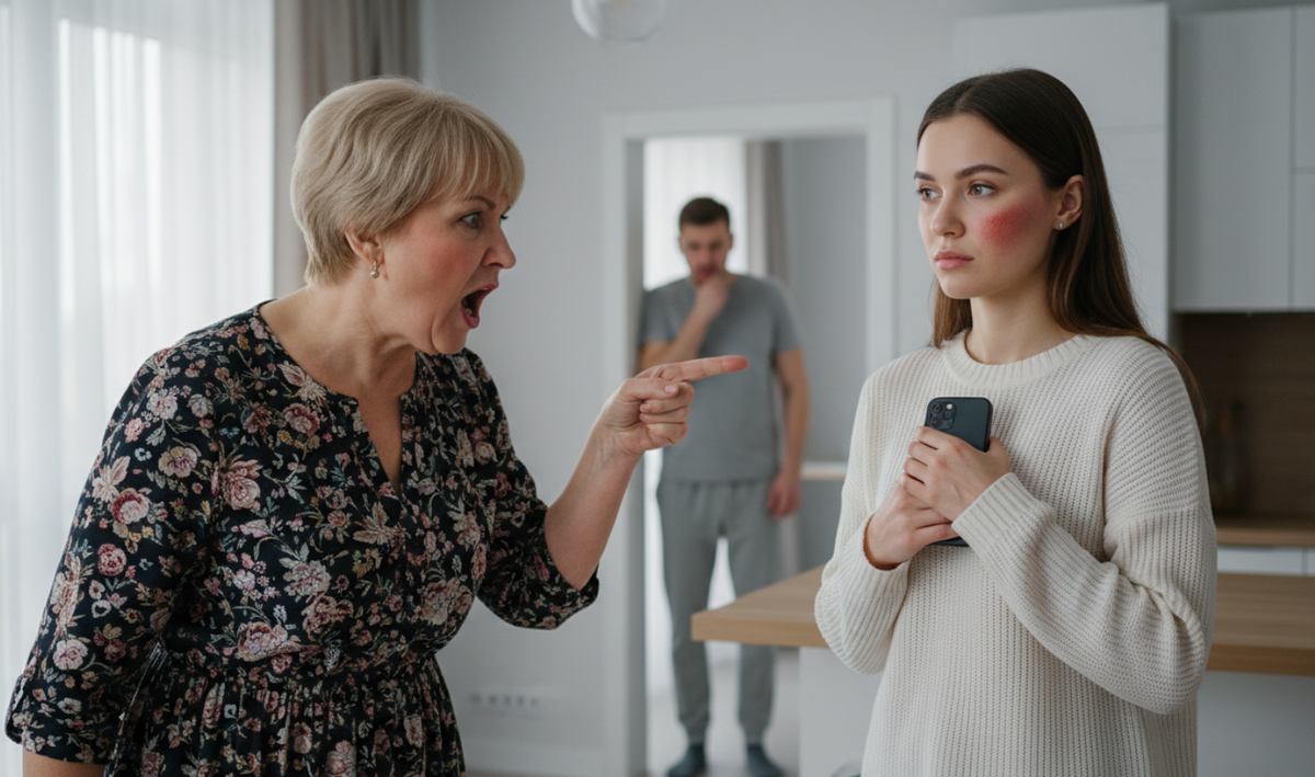 Галина Ивановна задохнулась от возмущения. Ее глаза недобро блеснули. В следующую секунду она резко замахнулась и с силой ударила Юлию по лицу. Удар получился хлестким и очень болезненным. На щеке моментально загорелся багровый след от тяжелого кольца свекрови.