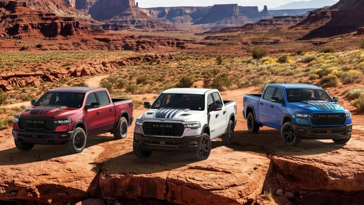 Модели Big Horn, Laramie и Rebel получили оформление в цветах флага, уникальные детали экстерьера и обновлённый салон с тематической отделкой. В линейке двигателей — V6 на 309 л.с., V8 Hemi на 400 л.с. и битурбо-шестёрка Hurricane на 426 л.с. Цены стартуют от $61 415 (≈ 5 530 000 ₽) и доходят до $72 830 (≈ 6 550 000 ₽). https://dzen.ru/id/620a2df4f426985e50a1aa37 sochiautoparts.ru #sochiautoparts