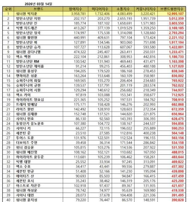 🍒 Рейтинг репутации брендов участников бойз-групп за март 2026 года: