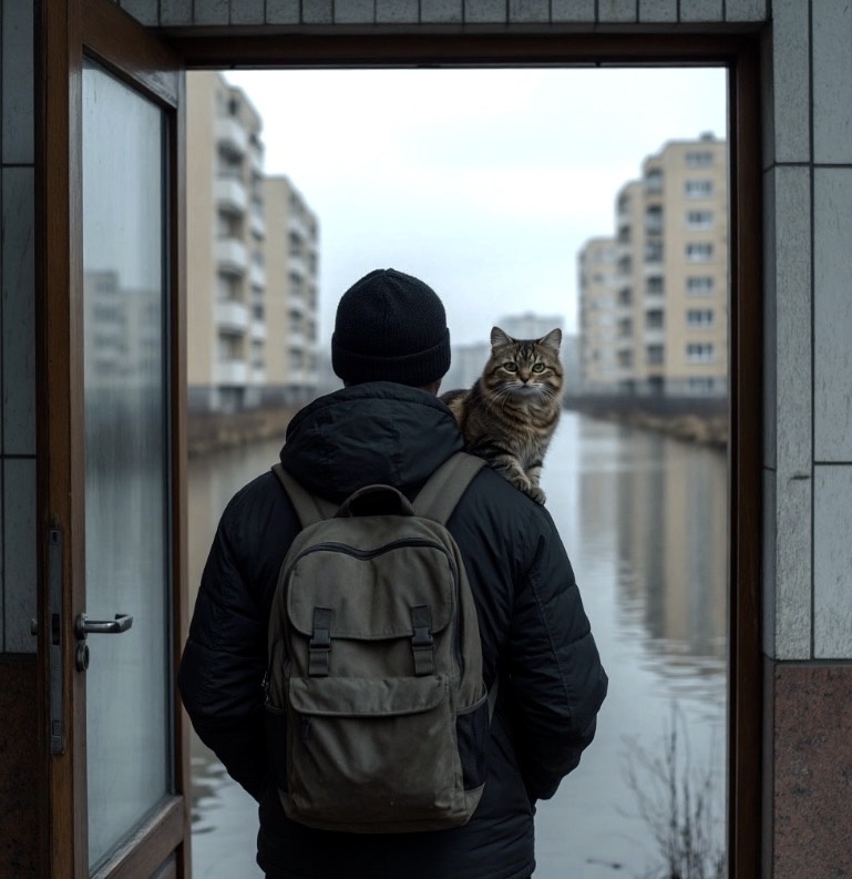 Кузя сидел у порога и ждал. Я застегнул куртку, взял переноску, но кот мотнул головой и запрыгнул мне на плечо. Тяжёлый, пушистый, тёплый. Я усмехнулся — пусть так.