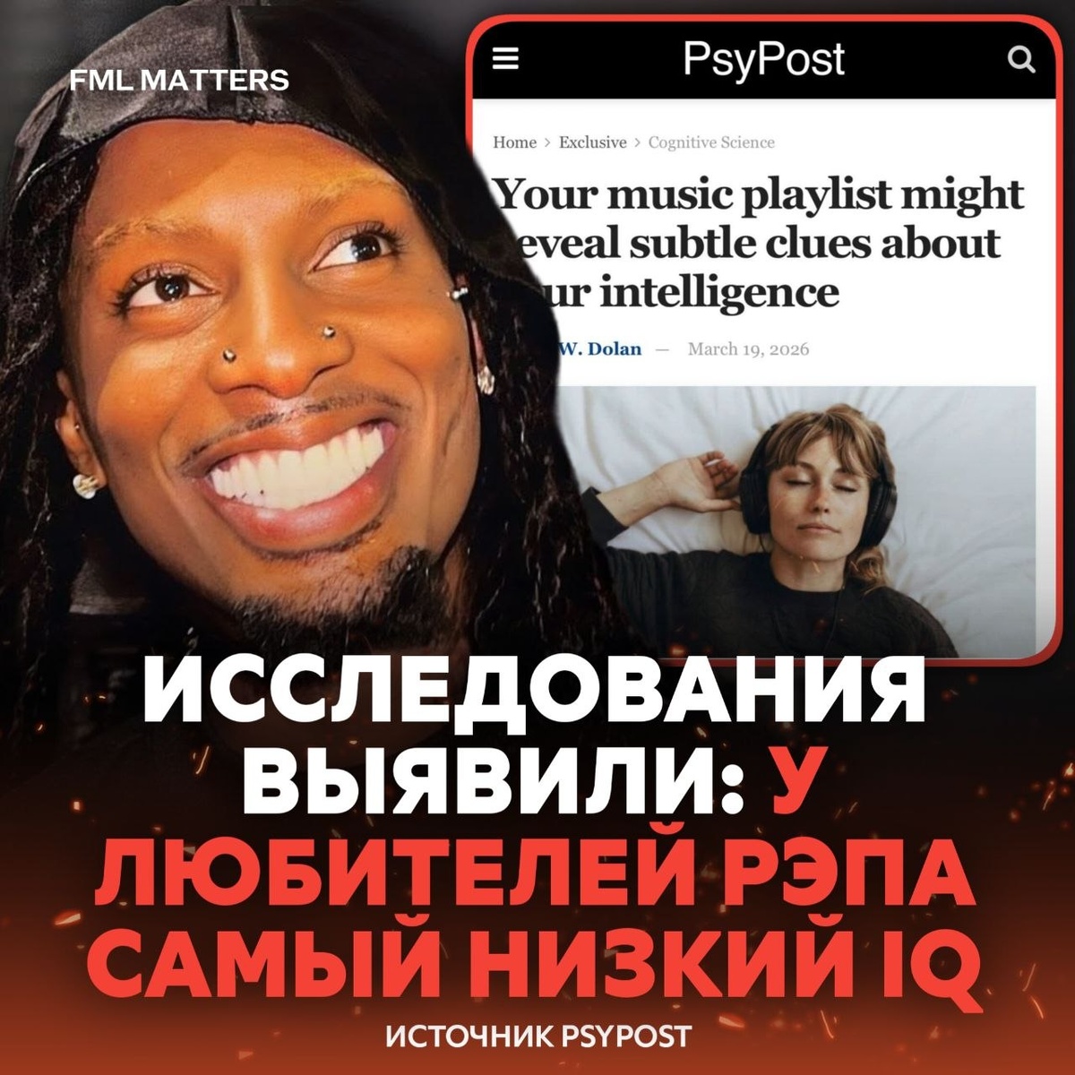 ! В сети появилось исследование, в котором говорится, что люди с более высоким IQ чаще предпочитают инструментальную музыку — классику, эмбиент, джаз и саундтреки без слов. «Люди, которые чаще слушают рэп, в среднем показывают более низкие результаты по IQ» Делитесь своим IQ в комментариях 👇 (проверим) 💀 FML MATTERS