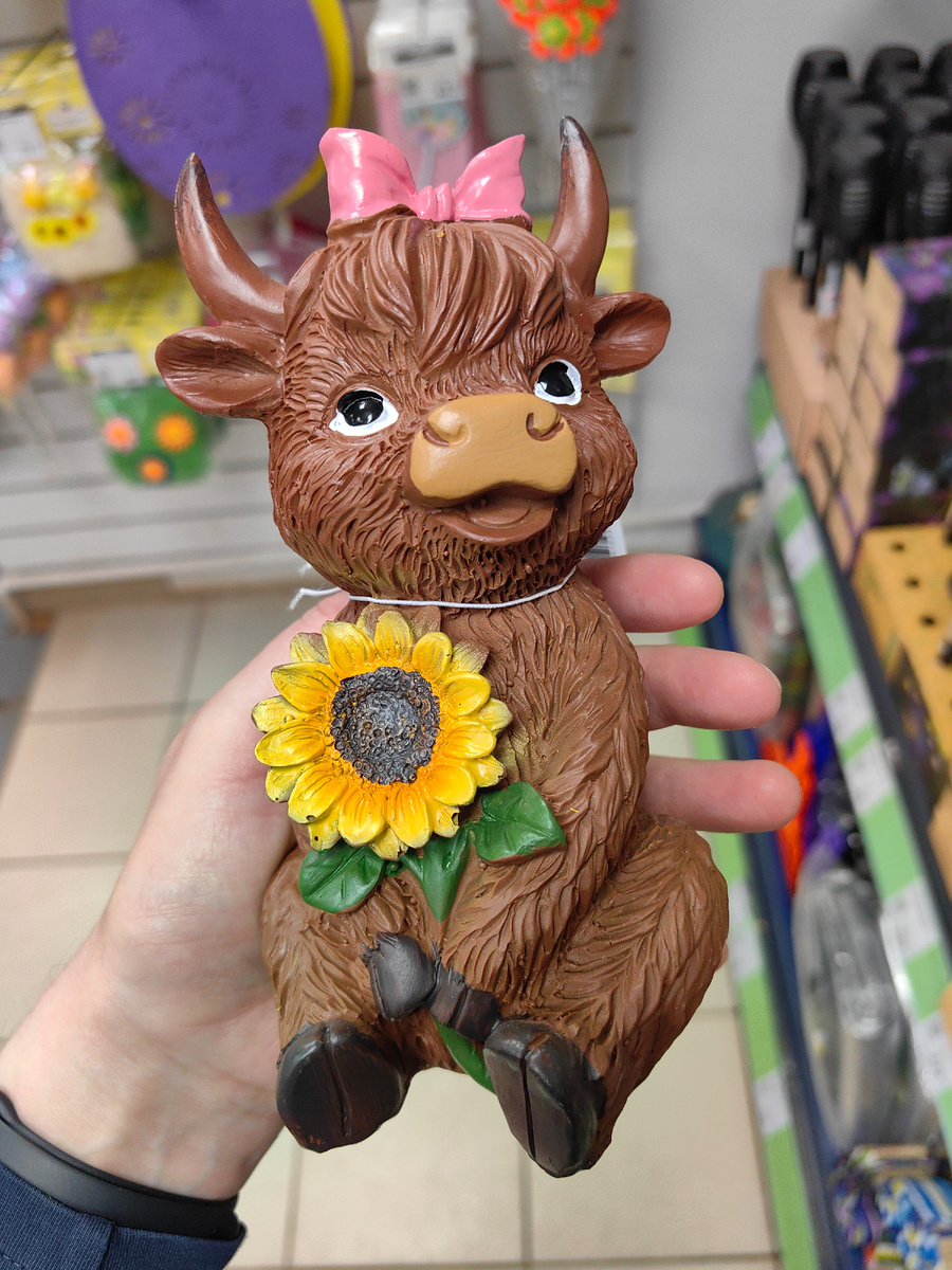 Столько всего опять в Фикс Прайс, и для сада нарядные, и для дома немало. "Идёт бычок, качается..." - сразу вспомнились строчки из детского стихотворения. Это все потому, что первая садовая новинка так и называется, "Бычок". Улыбается, радуется летнему солнышку, первым подсолнухам. Декорация для оформления газона или клумбы. Одна? Нет, еще несколько!