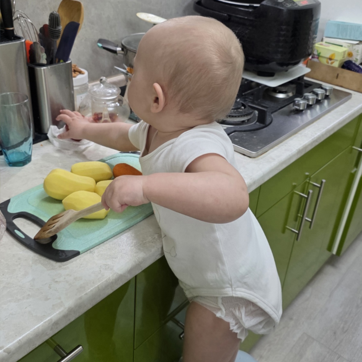 Когда я готовлю на кухне, она всегда рядом. Ей так нравится смешивать ингредиенты, будто она — настоящий шеф-повар!