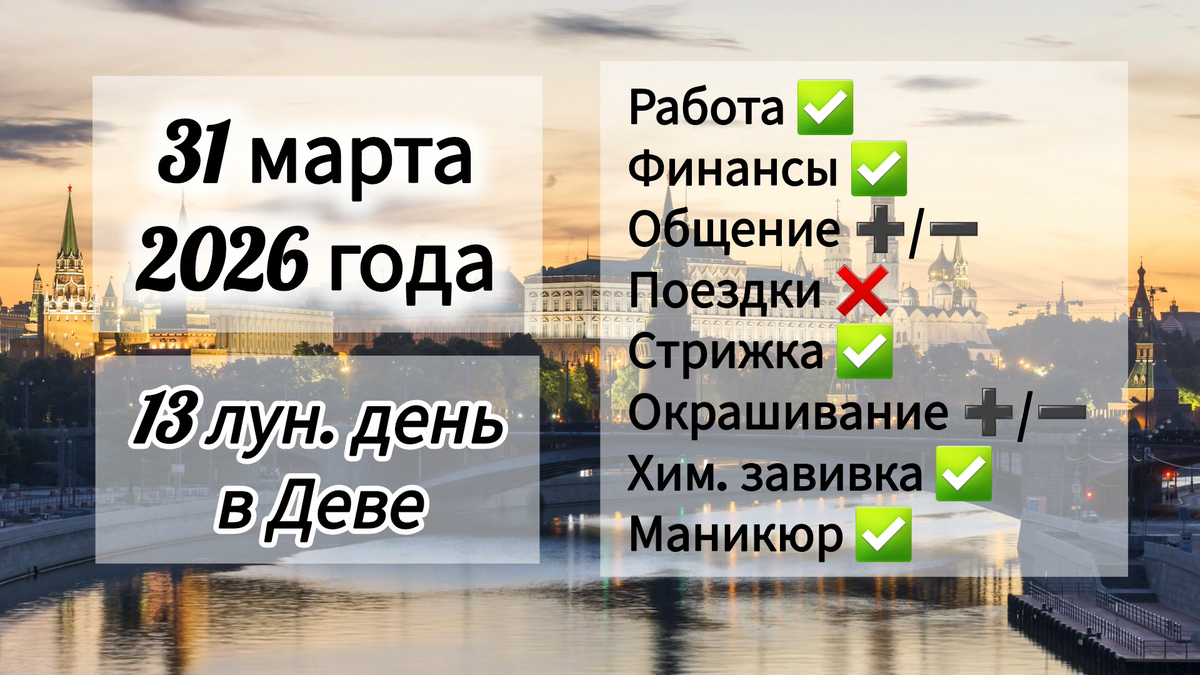 В этот день продолжаются кармические 13 лунные сутки. Внимательно относитесь к окружающим знакам. В вашей жизни могут появиться люди, о которых вы уже позабыли, могут свершиться те же события, что вы наблюдали в прошлом. Есть вероятность повторить старые ошибки и «наступить на те же грабли». Это сигнализирует о непройденных кармических уроках, ситуациях или отношениях, которые требуется проработать. Необходимо освободиться от груза прошлого, чтобы активно двигаться в будущее. День подходит для решения текущих вопросов и небольших новых проектов. Этот лунный день покровительствует студентам и людям творческих профессий. Любые финансовые операции благоприятны. Можно совершать крупные покупки, инвестировать, оформлять кредит. Соблюдайте осторожность и полную концентрацию за рулем. В общении избегайте придирчивости по пустякам. Необходимо быть терпимыми. Уделите время семье, сделайте что-то сообща. В этот день стоит уделить внимание своей внешности. Благоприятны стрижка, химическая завивк
